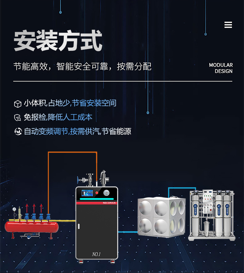 積木式自由組合,按需供氣;蒸汽量:6kg至6T;幾何容積小于30L,無(wú)需報(bào)檢;獨(dú)特汽水分離器蒸汽干度高達(dá)99%;溫度、壓力、可定制,更多參數(shù)可致電15323300918...